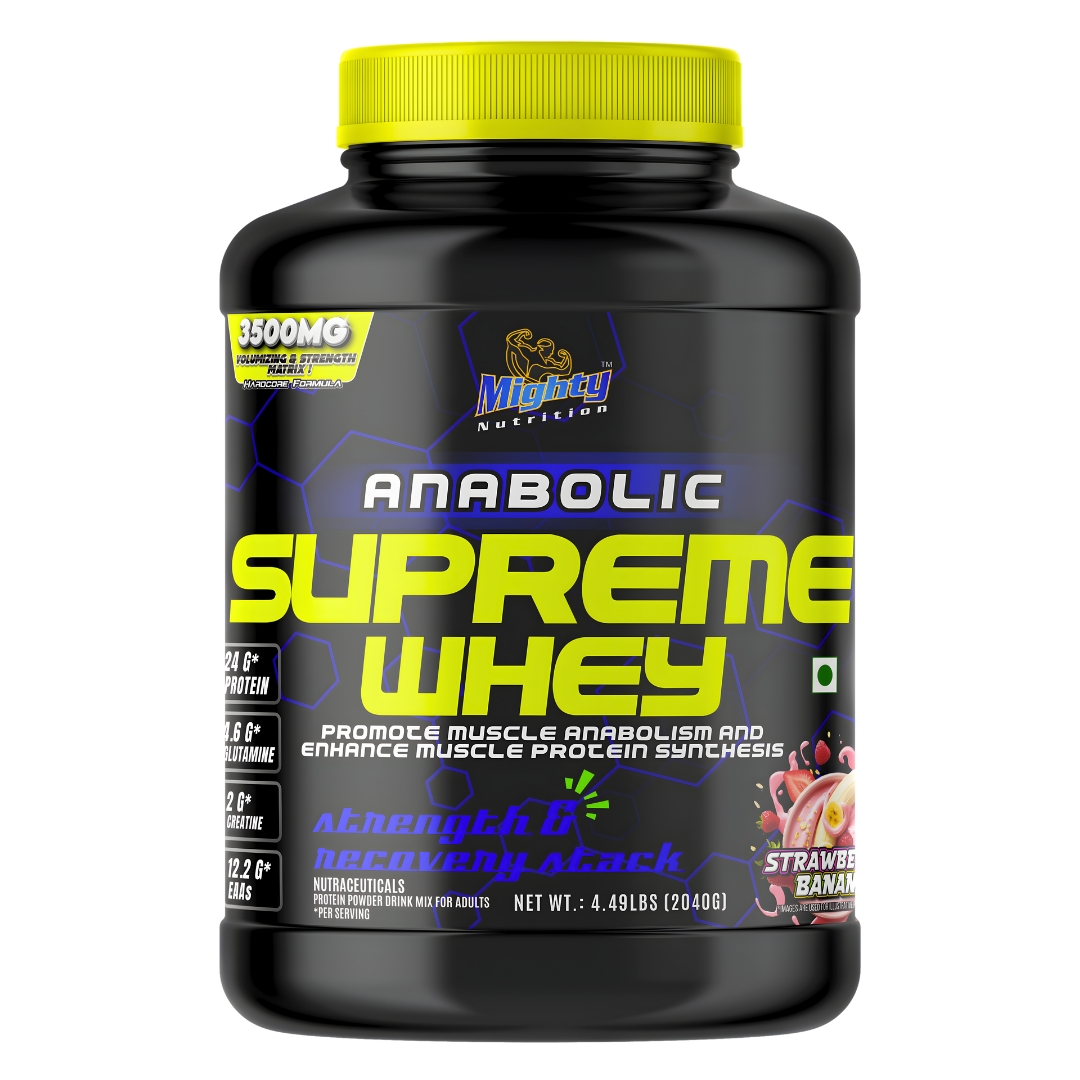 Anabolic Supreme Whey by Mighty Nutrition is a high-performance, muscle-building whey formula developed for athletes who demand superior recovery, enhanced anabolic response, and consistent strength progression. With its unique 3500 mg Volumizing & Strength Matrix, this formula delivers a powerful boost to muscle protein synthesis, helping you grow stronger, faster, and leaner.